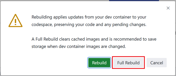 Follow these steps to rebuild your codespace: