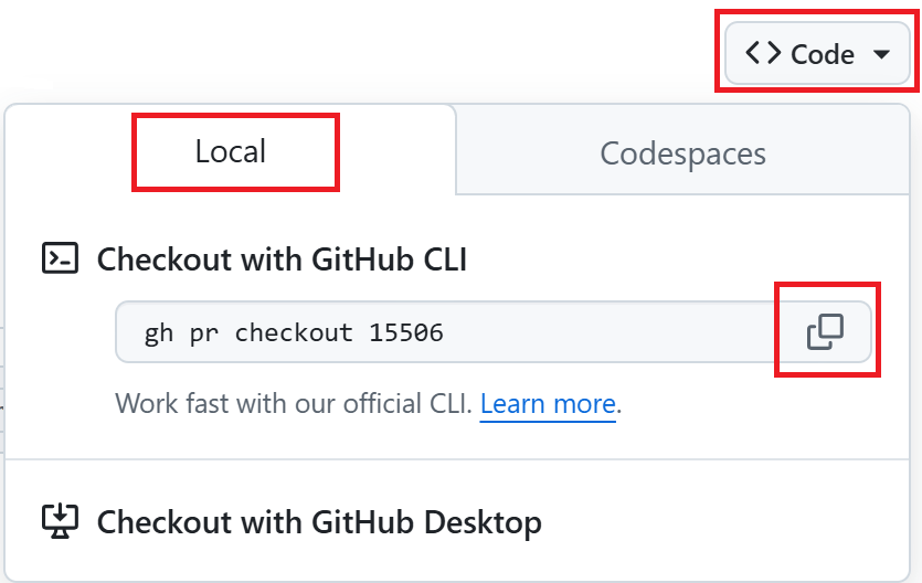 gh pr checkout XXXcommand in the ‘Checkout with GitHub CLI’.
