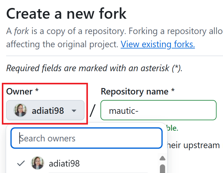 Forking the mautic repository is the first step you need to take before proceeding. Forking means making a copy of a repository to your GitHub account.
