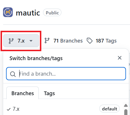 https://github.com/YOUR-GITHUB-USERNAME/mautic.Click the branch dropdown menu on the top left.